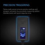• Custom CO2 and fan programming dynamically alternate to activate in response to carbon dioxide levels.
