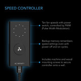 A 10-speed fan controller is paired with this inline fan to optimize airflow levels and noise in many applications. The fan’s PWM controls enable it to smoothly set fan speeds and operate at extremely low RPMs with no motor noise. Along with this wired speed controller, the CLOUDLINE is also compatible with the following controllers: