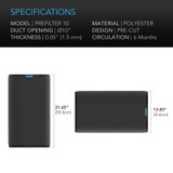 - Size: 12.83 x 21.65 in. | Fits 10-inch Carbon Filters | Thickness: 0.05” | Design: Pre-Cut | Color: Black